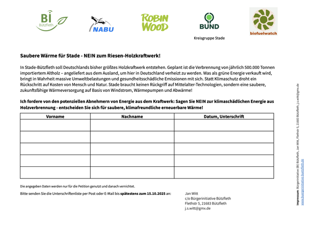 Saubere Wärme für Stade - NEIN zum Riesen-Holzkraftwerk!